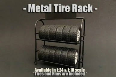 - 1:24 scale Metal Tire Rack with Tires and Rims