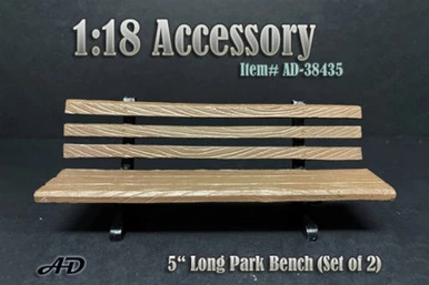 Add some class to your room with this high-performance accessory from American Diorama! This Park Bench (Set of 2 benches) is a 1/18 scale scale diecast model replica. It comes in brown and features made of resin, comes in a blister pack, bench is long enough to fit 3-4 figurines, great for decorating 1:18 scale cars and dioramas, note: figure and car not included.
